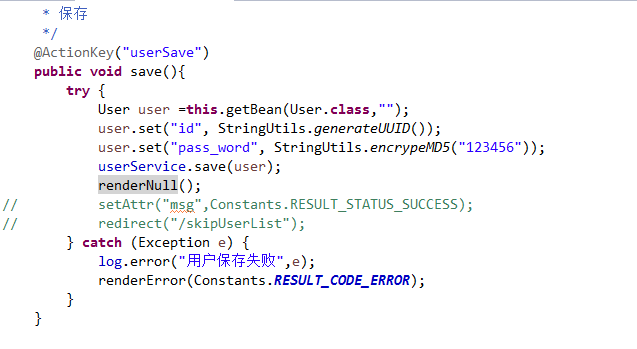 你请求userSave时候,浏览器在等待后台响应数据,等待的时候就是一个空白页面,而你后台没有响应,这个页面就不会有数据,自然就是一个空白页面。