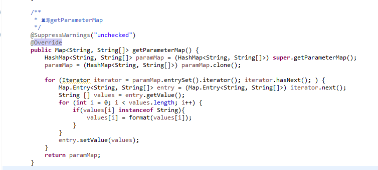 at com.common.handler.HttpServletRequestWrapper.getParameterMap(HttpServletRequestWrapper.java:38)