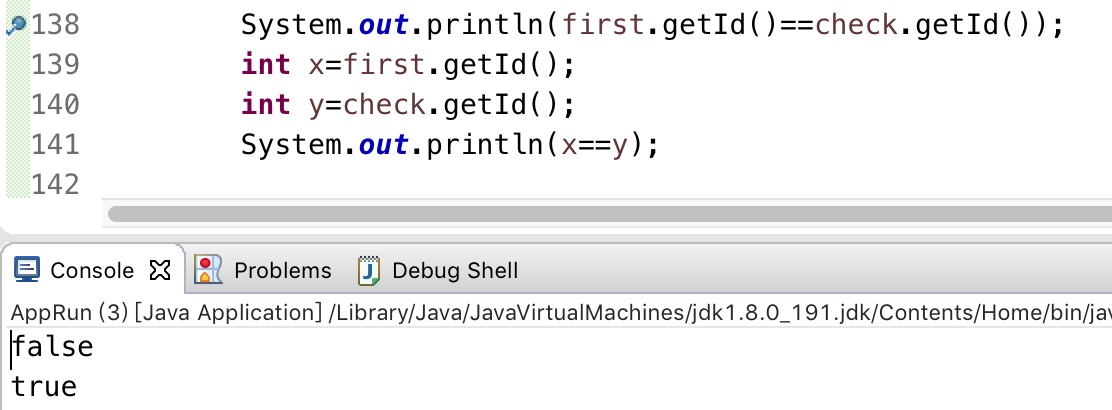 check和first是相同实体。他们在同一个事务里面。check是new出来之后save获取的。然后first是数据库里面查出来的。他们2个的数据是一样的。但直接get方式比较就是false。