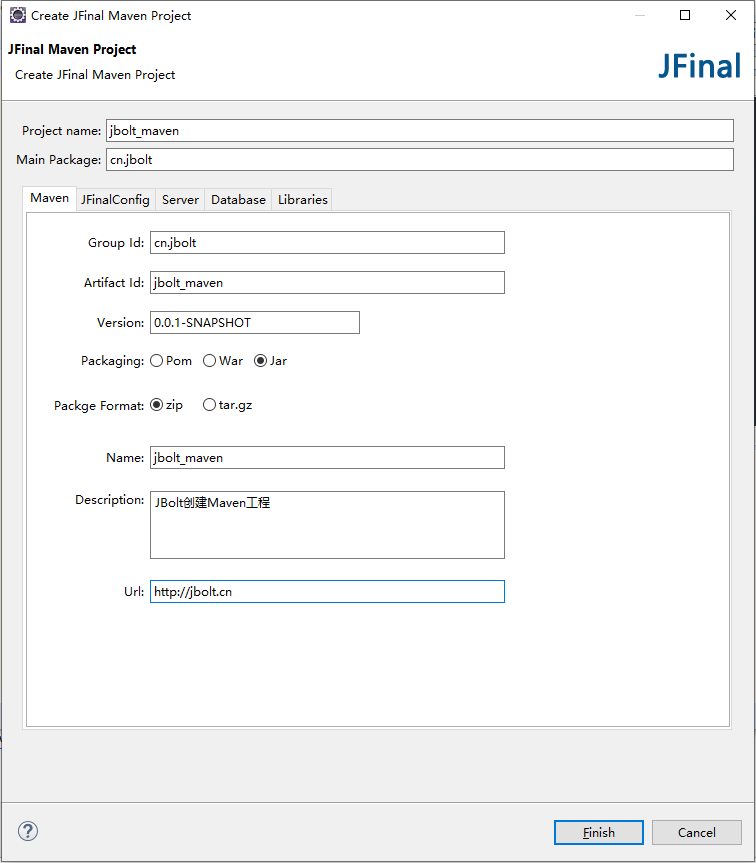 下面弹出的是创建JFinal Maven Project的向导: