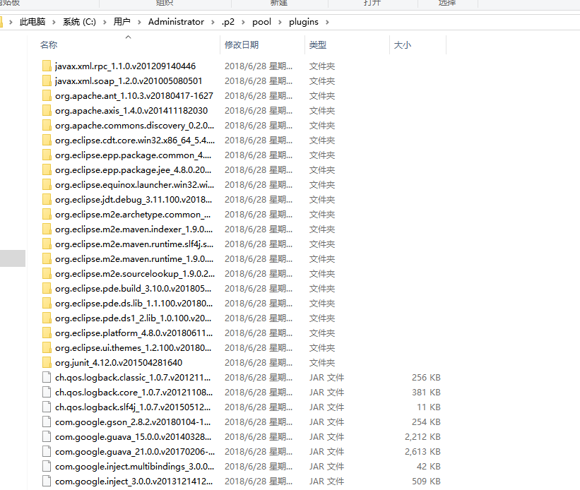 系统里安装多个版本的eclipse 就会共享在.p2目录下,比如现在我机器安装了两个版本的eclipse,那么,在.p2目录下就会出现多个版本的jar。