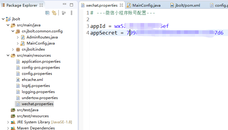 不管是单个还是多账号,不管是 Java 代码里直接配置还是读取配置文件,或者从缓存或者数据库总读取配置,最终都要在 JFinal 项目启动的时候,通过 JFinal Weixin SDK 提供的小程序配置工具类,进行配置。